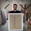 Obraz vybraný pro platformu 100ks má pro Gabrielu příznačný název – Pohledy do časoprostoru. Prosluněné dílo v odstínech žluté a bordó nás vtahuje do svých dimenzí, vybízí k cestování našich očí od jednoho místa k druhému. Snoubí se v něm svět rostlin, divokých řek a klidných hor na obzoru, ale i ornamentů a symbolů, kolem kterých jsme možná někdy prošli v historickém centru některého z evropských měst nebo při návštěvě starověkých chrámů. Dva kónické objekty nás zvou do hloubky malby. Připomínají troubu gramofonu, vnímáme, jak jimi proudí zvuk, který rozvibrovává celý obraz.