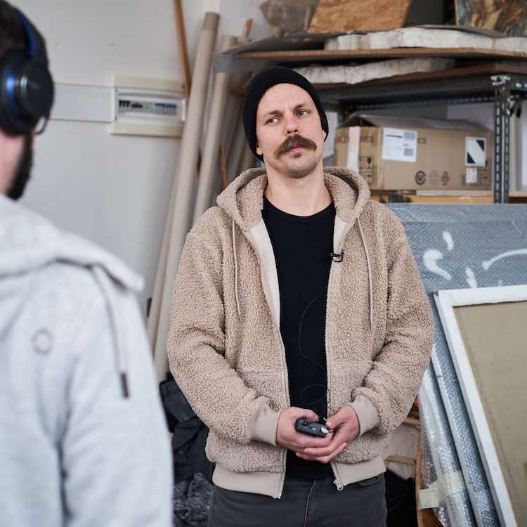 Spojení akrylové malby se sprejem mu umožňuje propojit malířskou tradici s výrazovou lehkostí a nadsázkou současného vizuálního prostředí, v němž se přirozeně prolínají galerie a ulice.